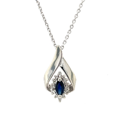 Back 10k White Gold Pendant with 5x3mm Marquise Sapphire and .02ct total weight Diamonds (I2/H single cut diamonds) MSRP: $480 SKU: CSP264 Share on Twitter Share on PinterestShare on FacebookShare: Reserve in Store name email phonemessage Preferred Method of Contact email phone Reserve