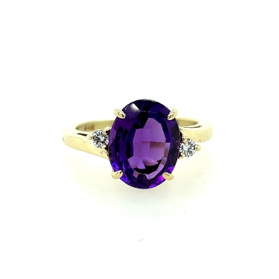 Back 10x8mm Oval Amethyst Ring with .06ct TW Diamonds (SI1/G); set in 14k Yellow Gold MSRP: $500 SKU: CSR254 Share on Twitter Share on PinterestShare on FacebookShare: Reserve in Store name email phonemessage Preferred Method of Contact email phone Reserve