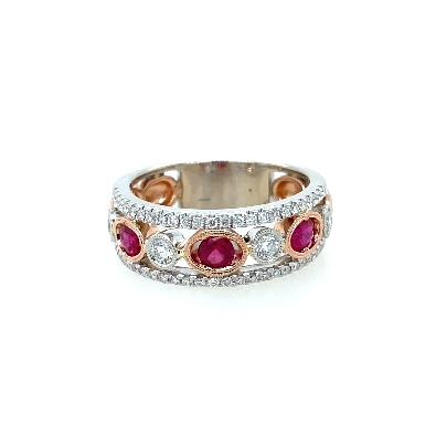 18k White and Rose Gold Fashion Ring with AAA quality Rubies and .49ct total weight Diamonds (SI1/G)