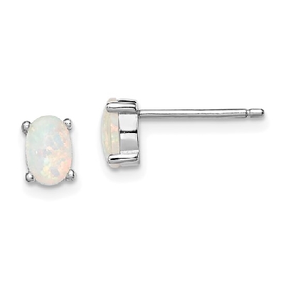 Sterling Silver Rhodium-plated Created Opal Post Earring Oval 6x4mm